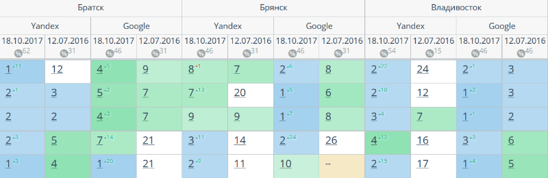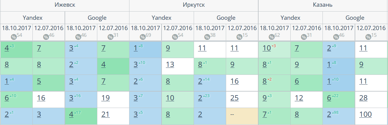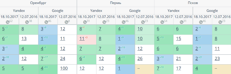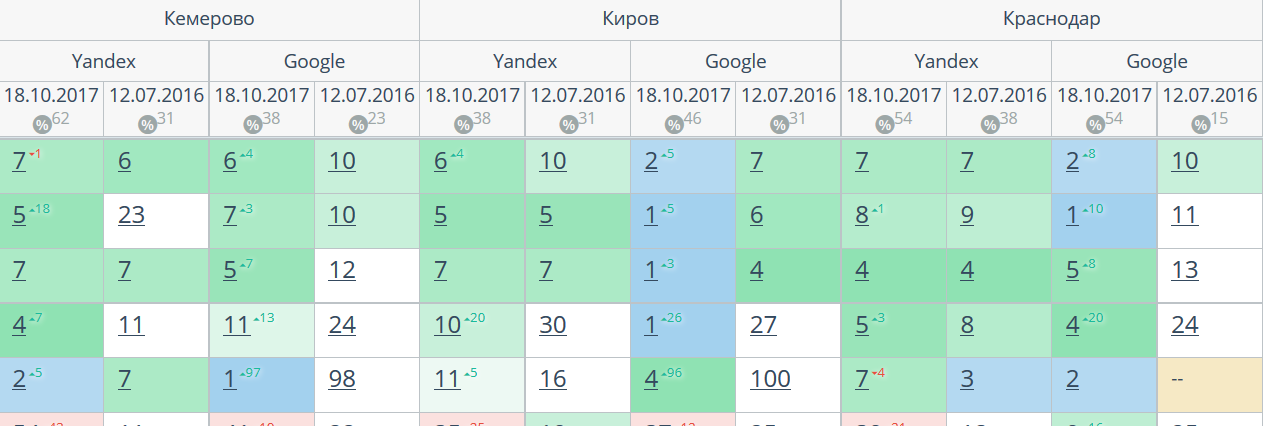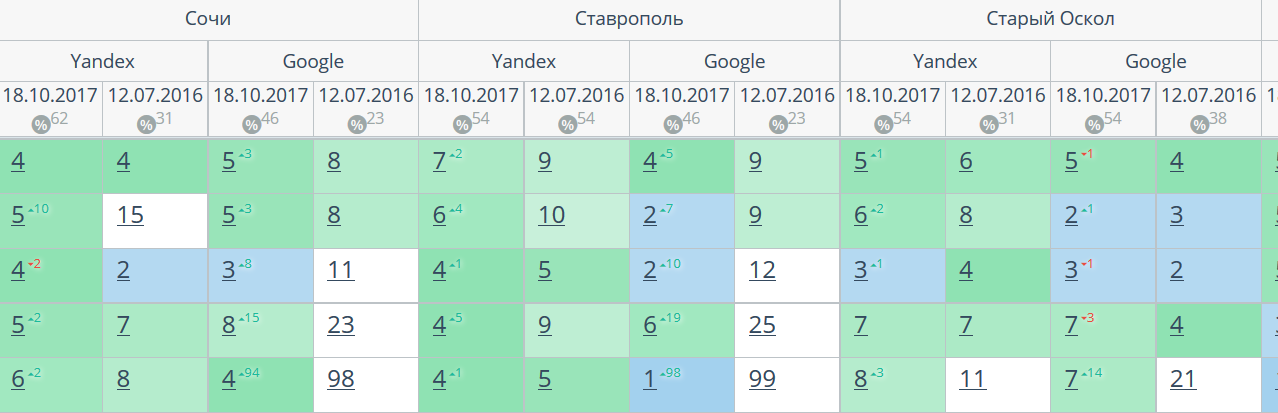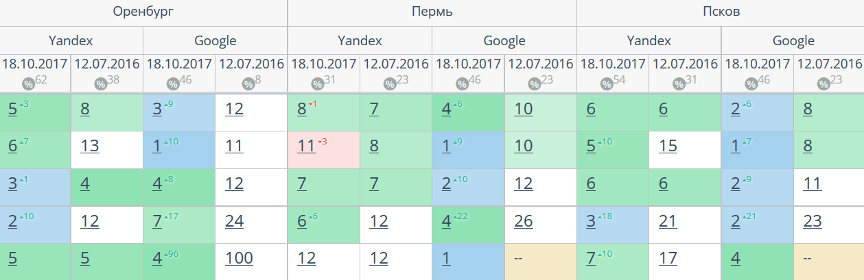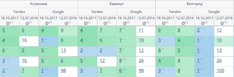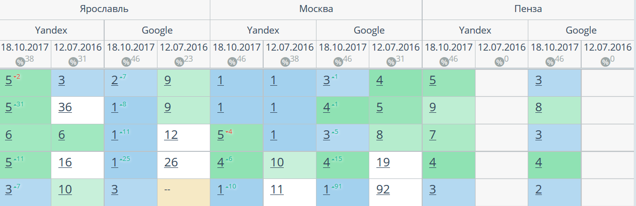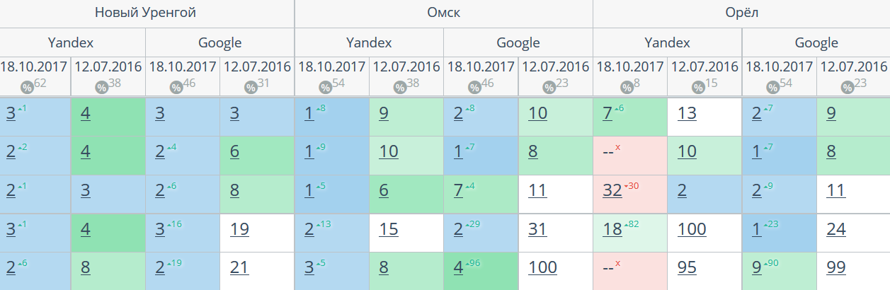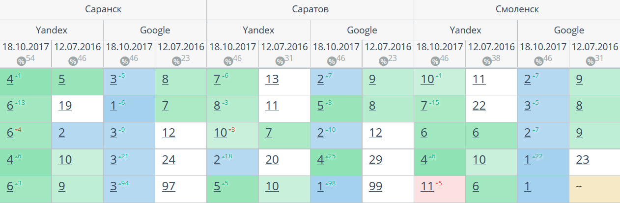 Комплексный интернет-маркетинг: SEO, SERM, SMM и т.д. Время продвижения более 15 месяцев. Продвижение в Яндекс и Гугл: МСК + РФ дало и продолжает давать непрерывный рост позиций по Москве и РФ. Трафик 2500 человек/день. Отчетность и контроль позиций по 54-м самым крупным городам. Ниже позиции 5-ти самых важных запросов интернет-магазина через несколько месяцев после начала работ и сейчас.