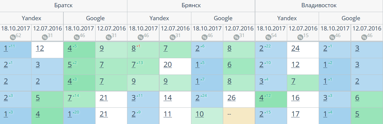Позиции по запросам только по Москве, топовых мало или отсутствуют, в регионах позиций нет совсем: при том, что сайт работает более 3-х лет!